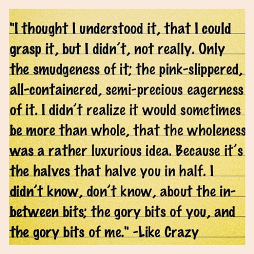 Una noche de esas en la que me paso leyendo tweets en tiempo real (gracias a Tweetdeck) mientras hago otras cosas, reparé en unas palabras de mi twitter-amiga Ligia Carrión. Ella compartía en varios tuits su opinión sobre una película titulada «Like Crazy» (de la cual no tenía conocimiento alguno) y, por lo que estaba leyendo en sus comentarios, noté que en la trama presentaban algo que muchas parejas (me incluyo) han vivido o actualmente están viviendo: la distancia.