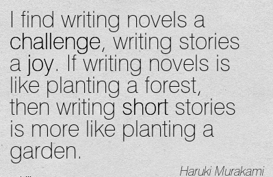 Quizás no leo tantos cuentos como antes, pero si he leído 200 novelas, fácilmente doblo esa cantidad en cuentos leídos. También puedo sentirme orgulloso al decir que he escrito unos 20 cuentos (meros bosquejos) y no he podido completar ninguna novela… más «joy» aunque menos «challenges», tomando la frase de Murakami.